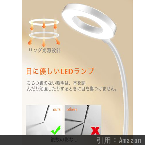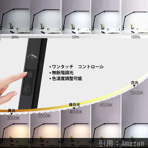 『目に優しい』LEDデスクライトに不可欠な機能です。