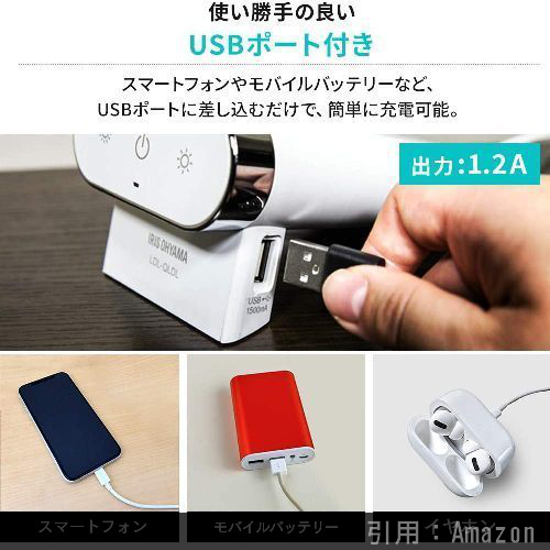 スマートな照度センサーで使用環境の光を感知、環境の明るさを判断でき、自動で最適な明るさと温度を提供します。 - USB充電ポート搭載