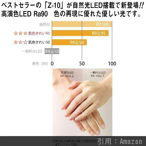 を示す値になります。値はRa(アールエー)で表され100に近いほど自然色(本来の色)に近いとされます。Ra80以上あれば十分にLEDデスクライトとして『目に優しい』と言える値です。
