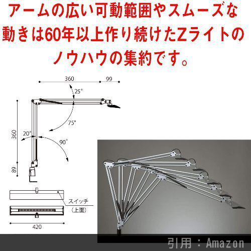 鋭いLEDの光は強い明暗を生み、多重の影によって作業に悪影響を与えることがあります。しかし、ゼットライトでは柔らかい影の使いやすい光を追求されており、目に優しい光を意識されて作られています。スムーズな平行移動するシンプルアーム、LED光源の小ささを最大限に活かした最薄フォルムなどデザインが洗練されているのもおすすめポイントです。