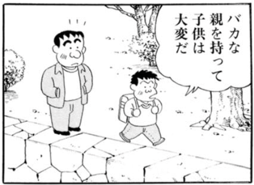 そのころの浩司君はというと、通っている学校で借金があること&お母さんが他に男を作って逃げたことがバレてしまい、誰にも相手されなくなってしまった。連ちゃんパパは『気にするな!』と無神経かつ無遠慮に励ますが、浩司君は気にする模様。