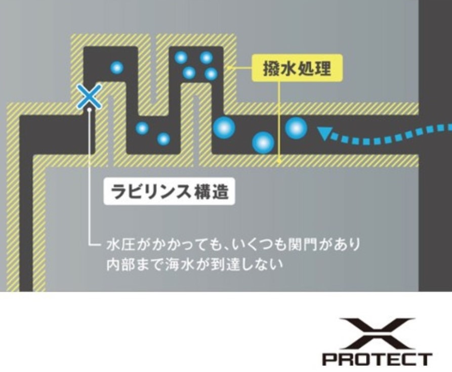 撥水効果とラビリンス構造を複合することで、回転の軽さを損なうことなく、水圧にも耐える防水性能を実現。搭載箇所はラインローラー部とボディ(ローラークラッチ)部。特にラインローラーの耐久性は5倍以上もアップしています(対当社従来品)。