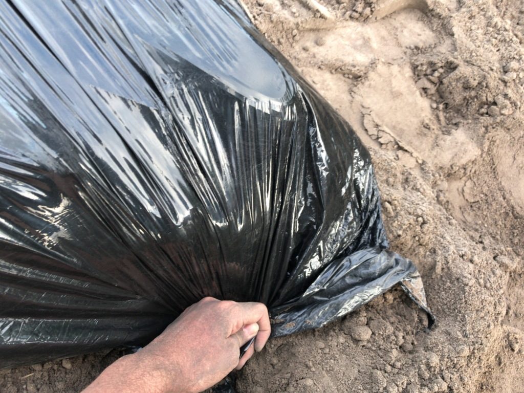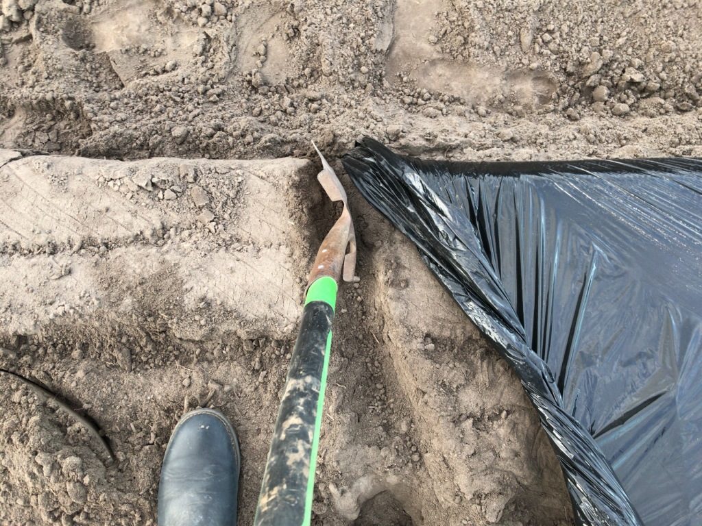 この作業では結構きつめに黒ビニールテープを締めて土をかぶせることが大事である。