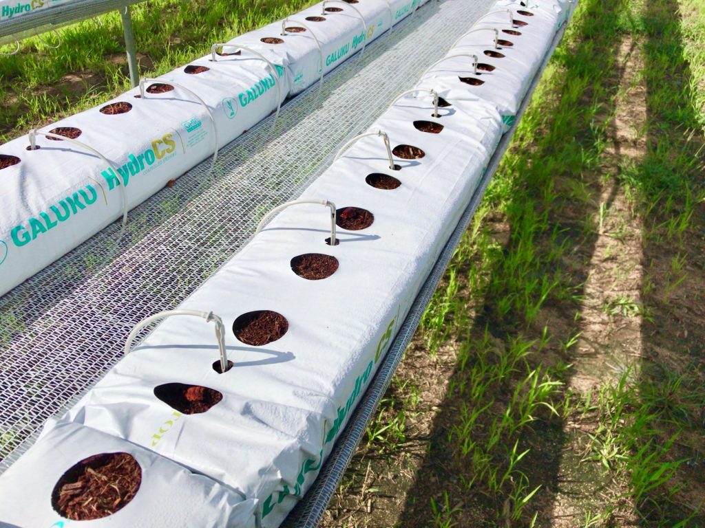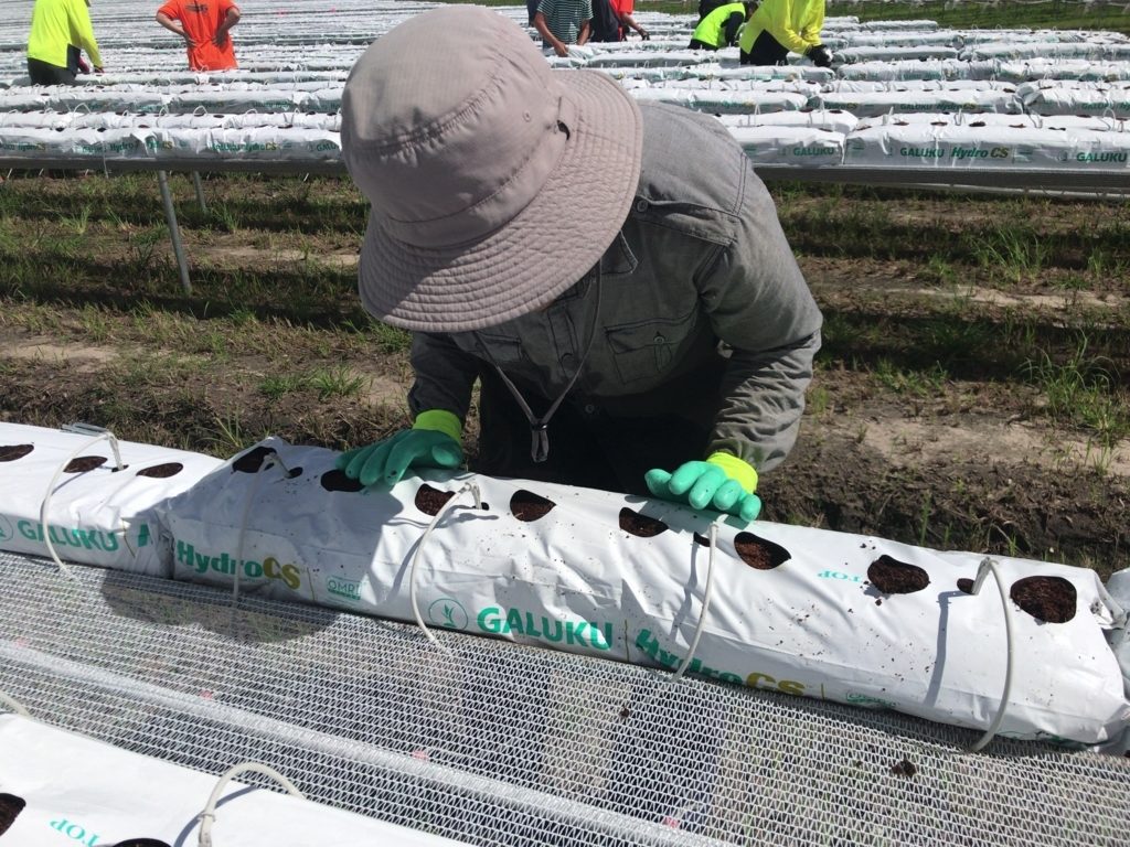 私の働いているストロベリーファームでは仕事は上記の写真のようなストロベリーの苗床を使用している。