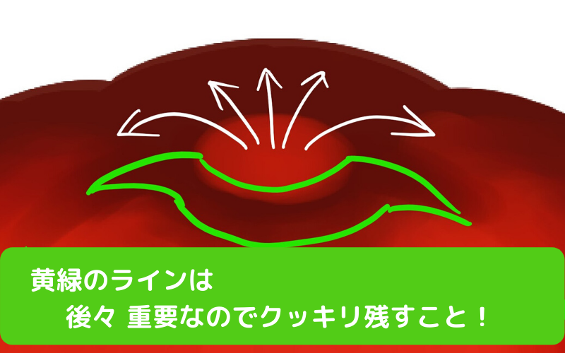 ここで重要なのが、黄緑ラインはクッキリと残すことだ。