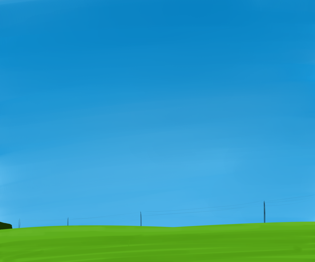 今回 描くような入道雲は遠近感が分かったほうが説明しやすいので上みたいな感じで適当に丘を描かせていただく(レイヤー①)。