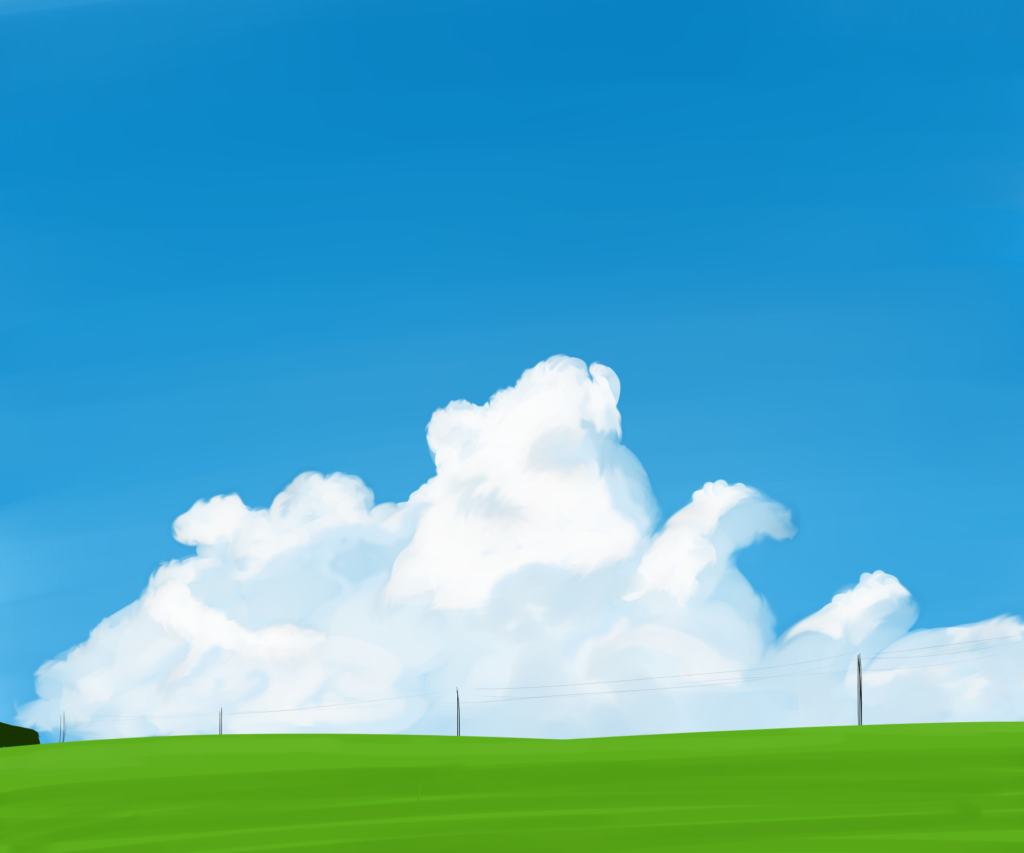 距離感を意識して、遠いところはブラシサイズ小、近いところはブラシサイズ大、といった感じで描いていくと雲の入道雲のスケール感を表現できる。