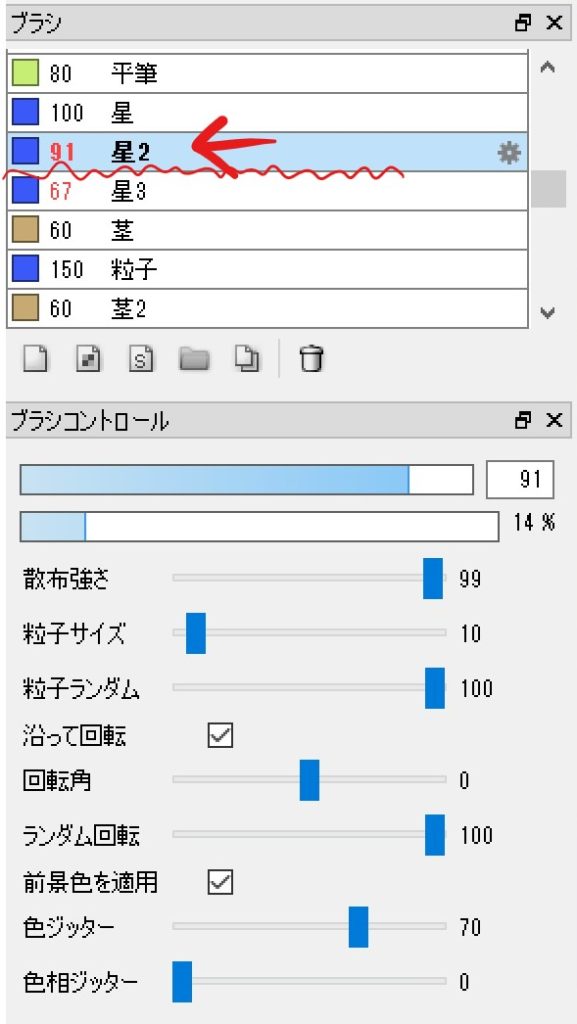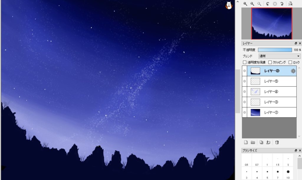 レイヤー⑤で、ペンブラシを使ってさらに星をいくつか追加したら完成!