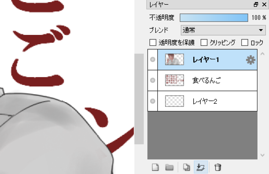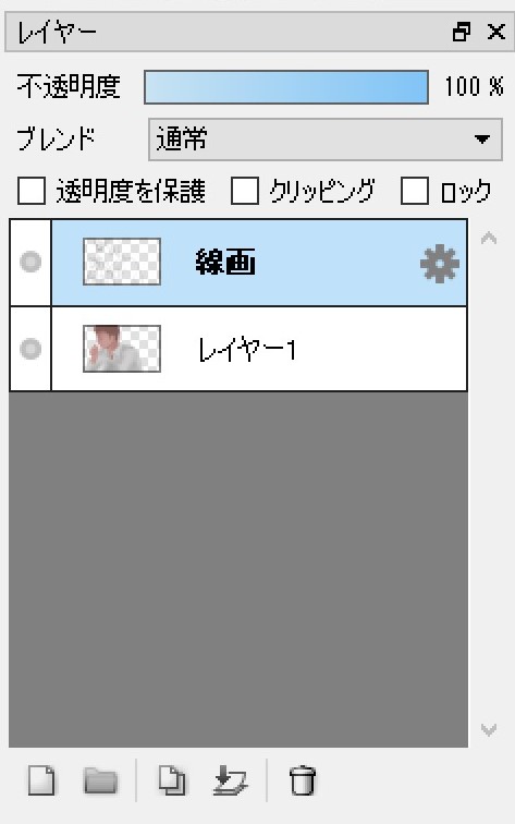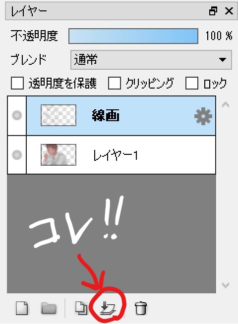 今回は「線画」を「レイヤー1」に落とし込みたいので、