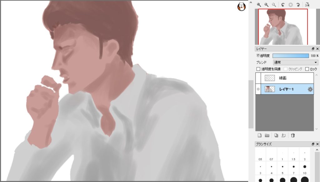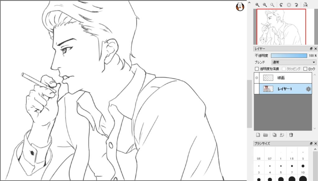 以上の「線画」と「レイヤー1」っていうレイヤーの2つを使う。