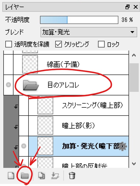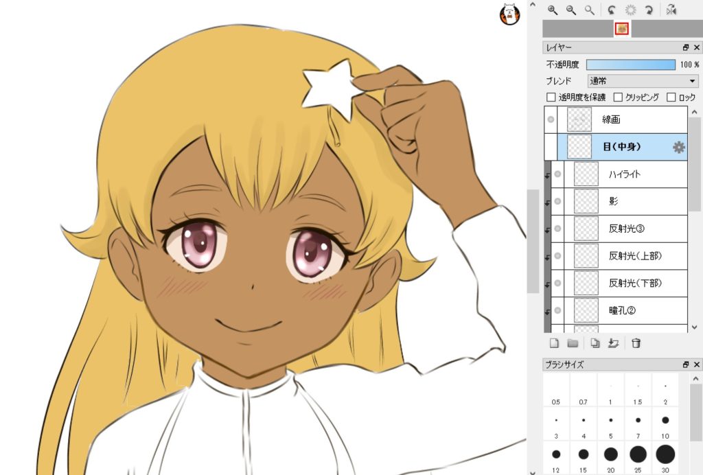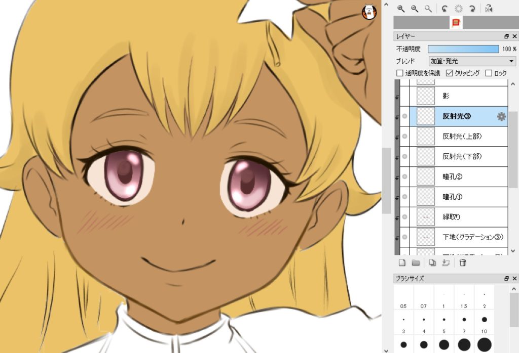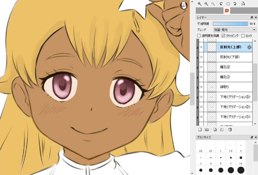 勿論、最初の方は仕様を覚えるためにもレイヤー数は多いほうがいいでしょうけど、慣れてきたらレイヤーは少なめにすることも意識したほうが良いです。ぶっちゃけて言えば、今回の記事で紹介した目レベルでしたらレイヤー2~3枚で事足ります。