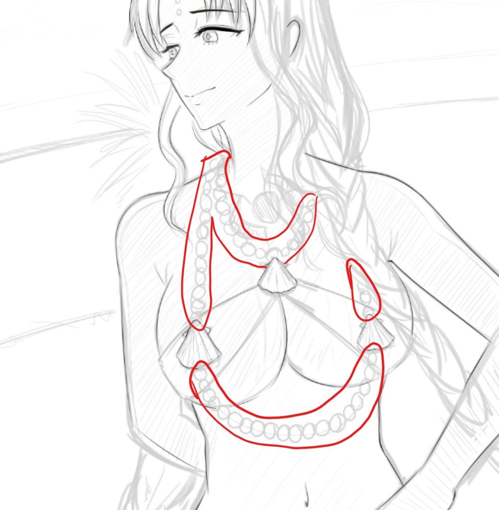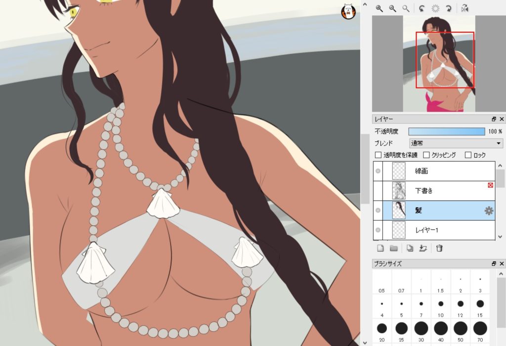 下書きの段階では意識してなかったけど、線画で〇を連続して描くのは正直辛い。なまじ絵が上手いとは言えない僕の場合、綺麗に〇を連ねて描くのは激ムズだ。途中で思い通りに描けなくて『やーめた!』という可能性すらある。