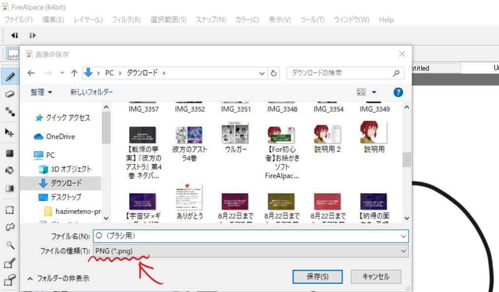 作成した〇のレイヤーをPNG形式で保存しよう。