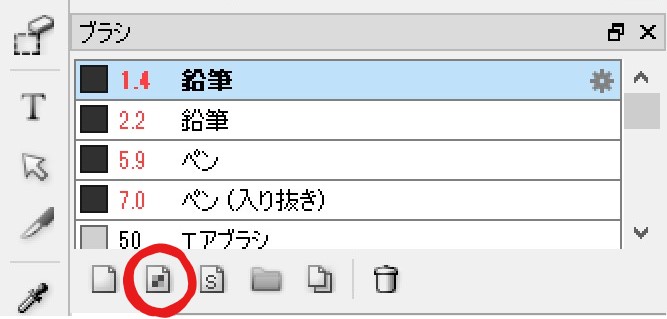 まず、上のようにブラシウィンドウの下、左から二番目に『ブラシの追加(ピットマップ)』という項目があるので、そちらを選択。