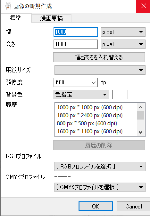 レイヤーの大きさは特に関係ないようで、今回の場合、1000×1000で新レイヤーを開いた。