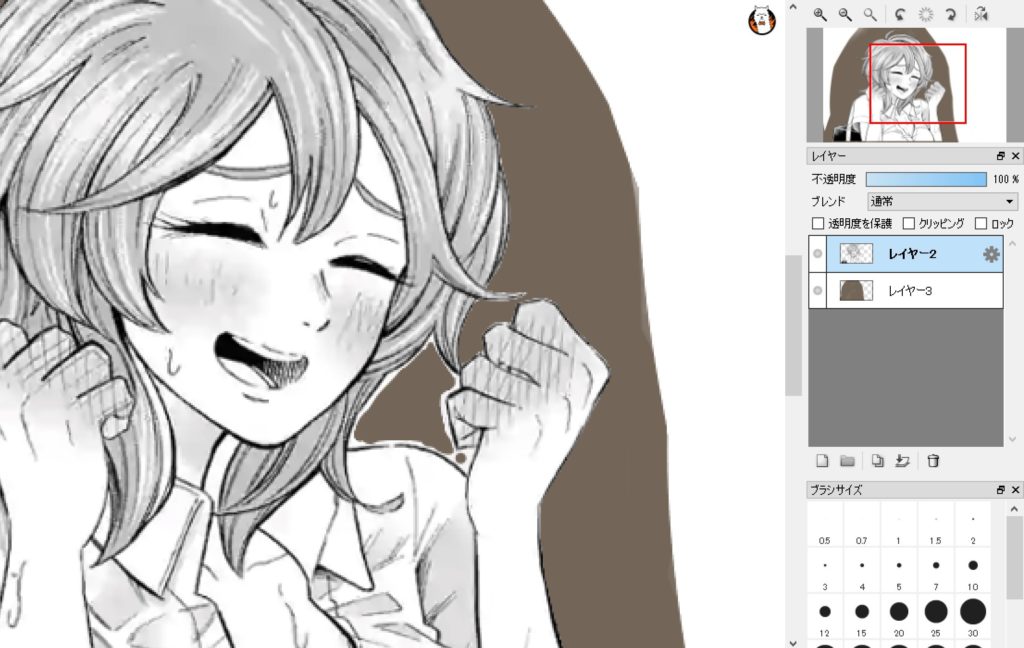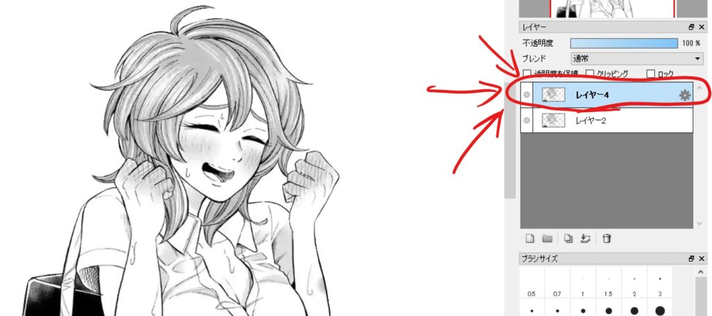 ☝のように、ひとつ下にレイヤーを作って、黒系の色で塗っておくと消し残しなく綺麗にシルエットを作成できるよ。