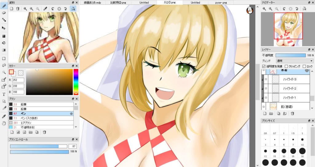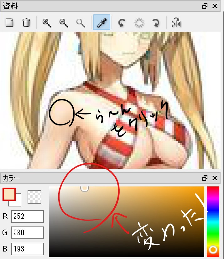 模写の資料として使えることもあるが、色抽出ツールの説明で先述したように色選びのときなんかにも非常に便利な資料ウィンドウだ。初心者の方は是非 使いこなしてほしい。なにか分からないことがあったら質問してね。