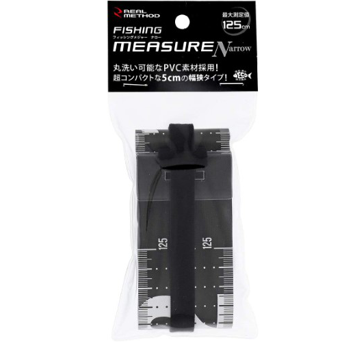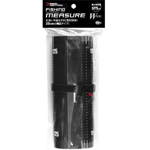 丸洗い可能なPVC素材採用の釣りメジャーです。使わないときはコンパクトに収納できるフィッシングメジャー『リアルメソッド』。素材がPVCなので巻き癖は若干つきますが、使用感では高い評価が多いです。こちらはワイドタイプ。ヒラメなどをメインで釣る方には見やすくておすすめ。