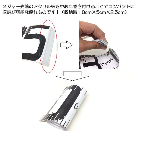 • 畳んだプレートにメジャーを巻き、バンドを留めればコンパクトに収納