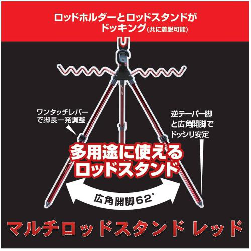 複数のロッドを立てられるマルチロッドスタンドです。竿立てに加えて、着脱可能なアームが備えられており、魚の急な引きでも竿を持っていかれない安心構造になっています。供給が安定しないのが玉に瑕。あるときに買っておきましょう。