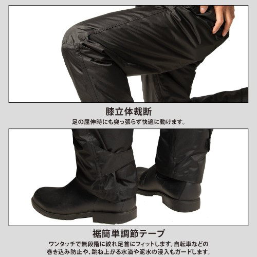 雨や水から身を護る防水仕様。ウェア内部に水を通さない生地構造。雨や水しぶきの浸入をしっかり防ぎ、衣服内を快適に