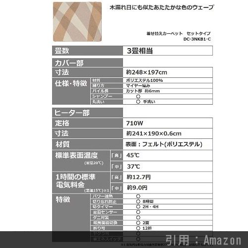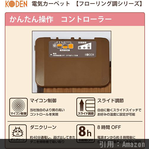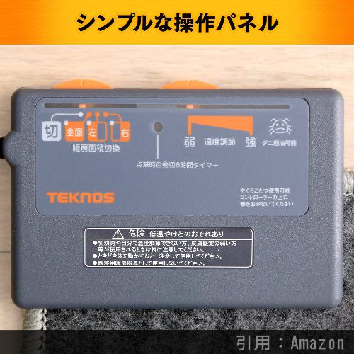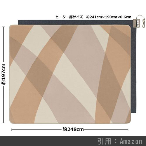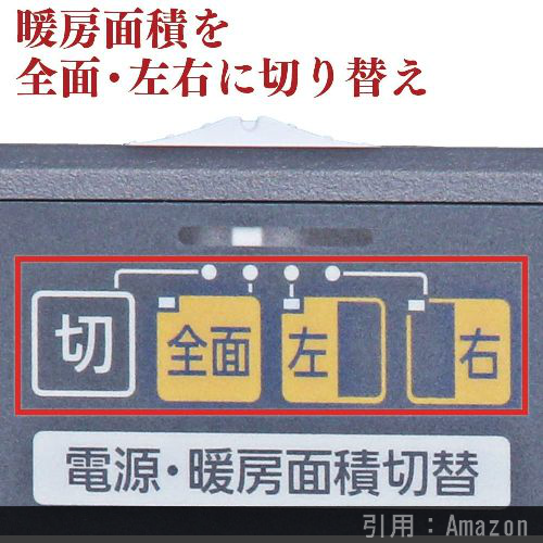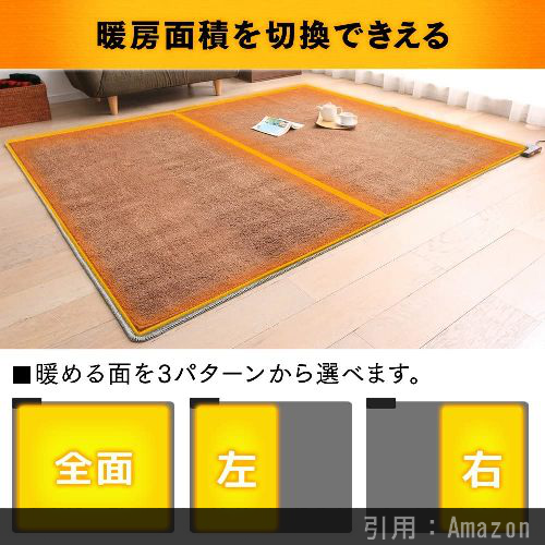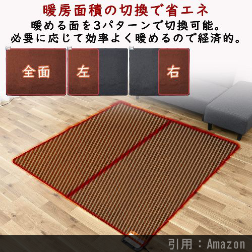 ムダな放熱を抑制する「トリプル断熱構造」となっており、アルミ均熱シートで熱をすばやく均一に伝え、断熱マットであたたかさを閉じ込めます。価格がやや高いですが、それに見合って高性能なヒーターや触り心地の良いカバーマットが付属されています。使う暖房面だけ暖められるのも快適&節電に◎。流石はパナソニック。