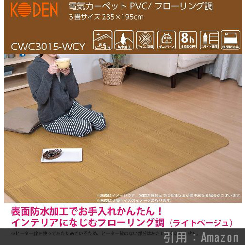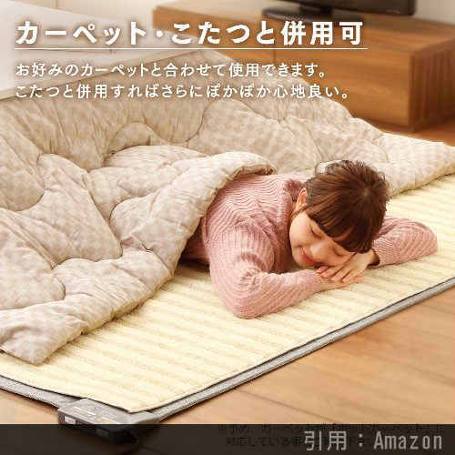 しかし、現在では各社 いろいろな便利機能をもつホットカーペットがあります。一例ですが、いくつか紹介していきますので参考にしてみてくださいませ。