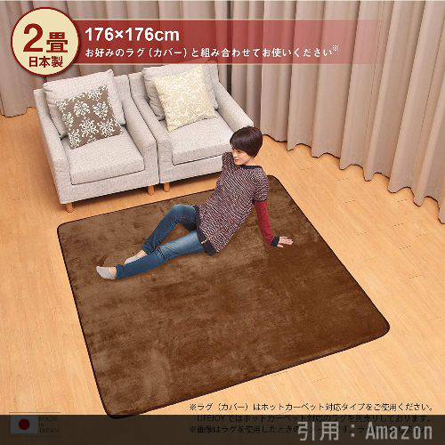 そのままでも使用できますが、自分でお気に入りのラグ(カバー)をつけて使用すると部屋をお洒落にできるホットカーペット。 - フローリングタイプ