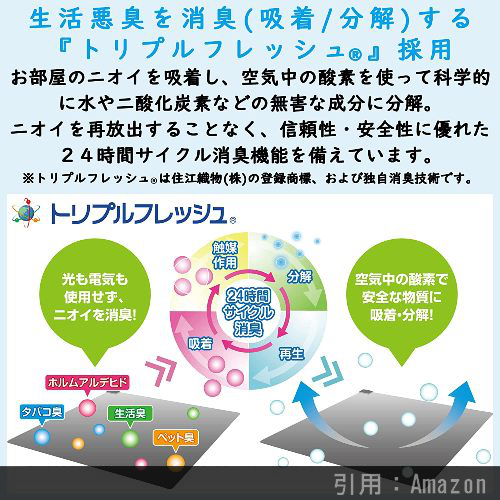 - 生活臭・ペット臭を消臭するトリプルフレッシュ採用