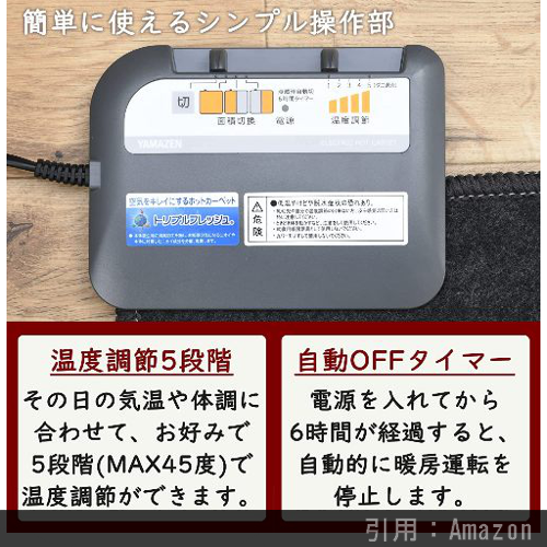 入眠時、うっかり切り忘れてしまいやすいホットカーペットです。