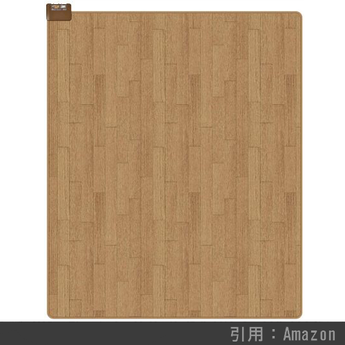 木目調のデザインのホットカーペット。表面がフローリングのようにスベスベしているので汚れに強い。キッチンに敷く方や、ペットを飼われている方におすすめ。