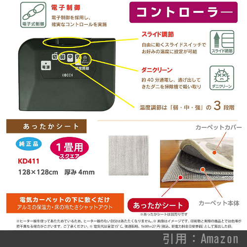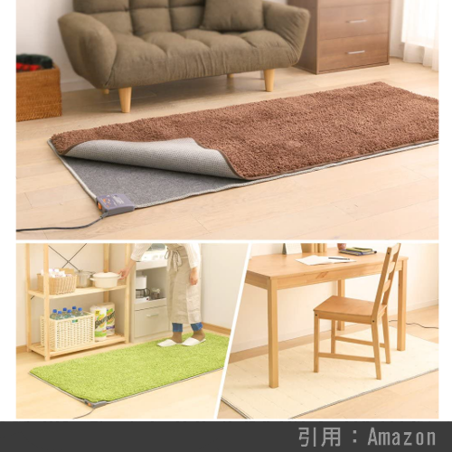 しかし、現在では各社 いろいろな便利機能をもつホットカーペットがあります。一例ですが、いくつか紹介していきますので参考にしてみてくださいませ。