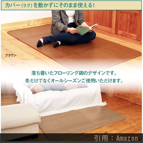 そのままでも使用できますが、自分でお気に入りのラグ(カバー)をつけて使用すると部屋をお洒落にできるホットカーペット。 - フローリングタイプ