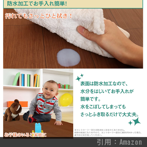 ホットカーペットを常に清潔に保ちたい方におすすめな機能で、ペットを飼われている家庭に人気だったりします。