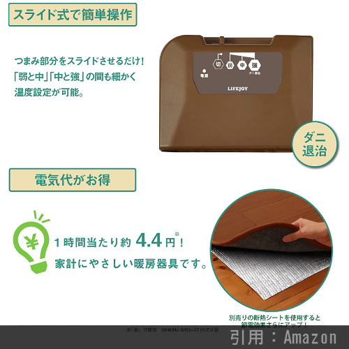 エアコンやストーブなどに比べても省エネ&節電にも役立つことから冬から春にかけては人気の暖房器具です。