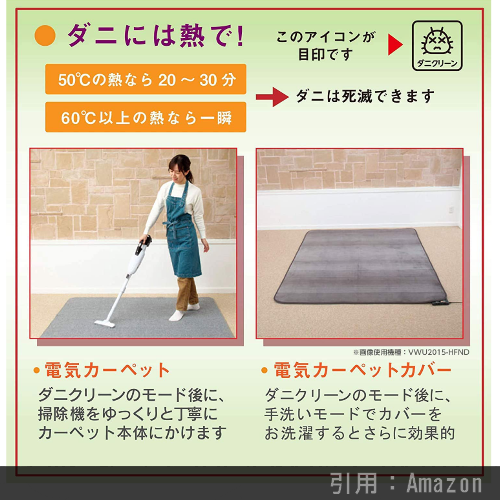 アレルギーの原因にもなるダニを、通電などをして退治する機能です。