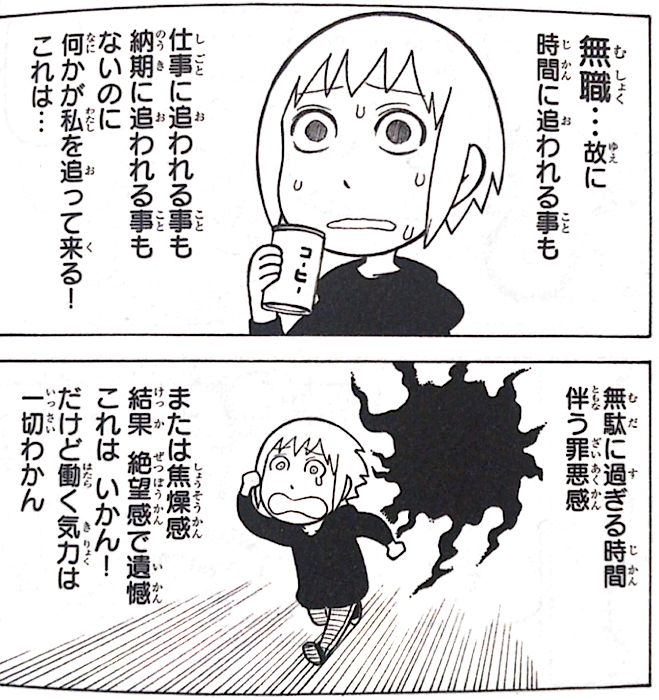 お気に入りの話が多すぎて決めかねるが、僕は☝のような無職感が強い主人公ネタが好み。キャラ重視のマンガだが、社会風刺ネタも鋭いので普段漫画を読まないような人でも楽しめる面白味もある。