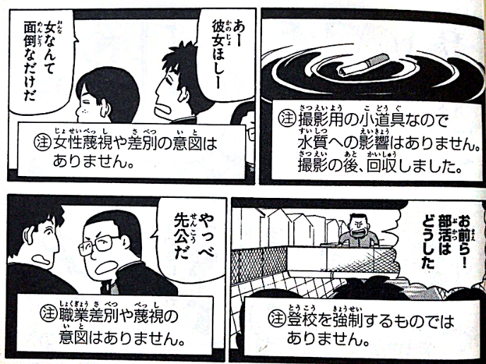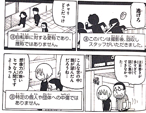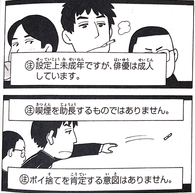 ☝ってあるじゃん。漫画の柱とかに書いてあるアレ。アレって法律でいちいち言わなきゃダメだと決まってるワケとかではないんだけど、常識の通用しない人たちが勘違いしないように自主的に入れることが慣習化されたそうだ。
