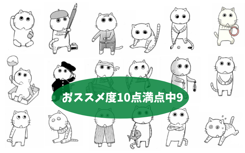 最初は(さすがにネコはもっと可愛いく描いたほうがいいだろ…?)って思うようなデザインだったけど読んでいるうちにどんどん可愛く見えてくる不思議。ちなみに一人称は「おれ」。何気にモテる。