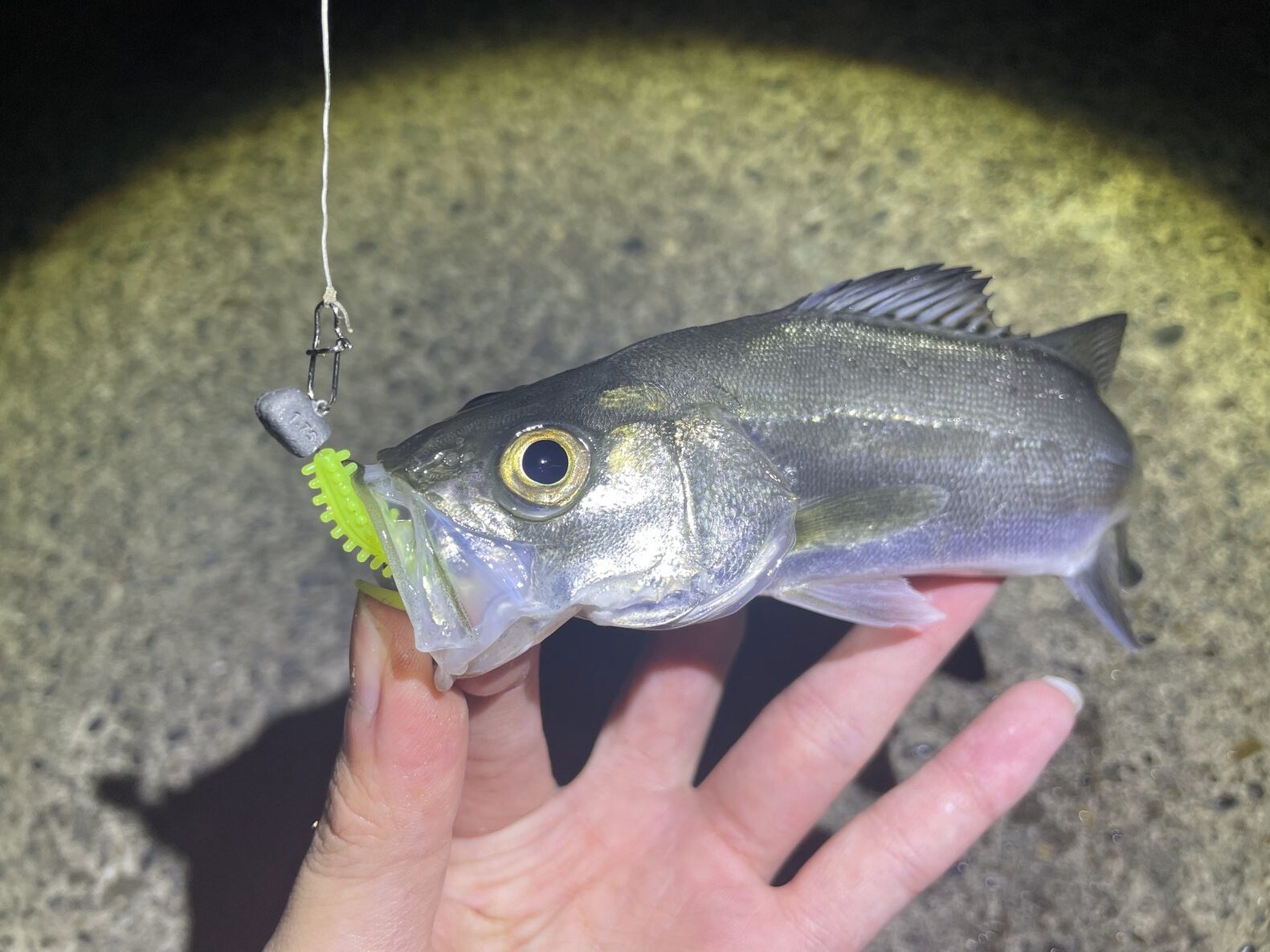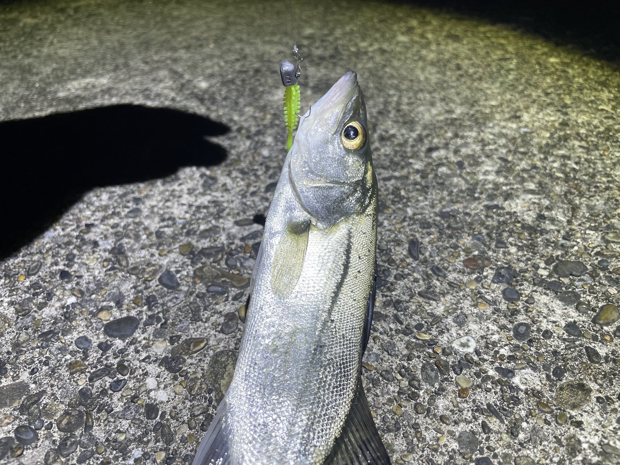 と、あまり期待していませんでしたが普通に良いサイズが釣れました。ちなみに釣り方はリフト&フォール(ジグヘッドは1g)。冬は追っかけてくるよりは目の前に落ちてきた餌を食べるようになっているのか、ただ巻きよりはフォール中にガツン!と喰ってくることが多かったです。