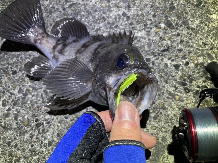 併用するジグヘッドの重さにもよりますが、リールを2回転させたら5秒止めて…と繰り返しているだけでも十分に魚にアピールしてくれました。表層からボトムまで順に探って釣れないようなら魚がいない可能性が激高なので、素直に場所移動が吉。