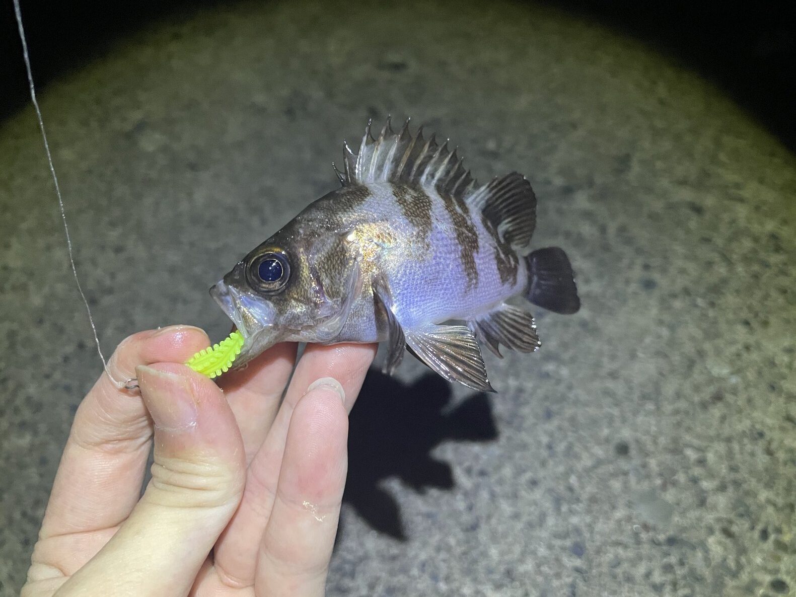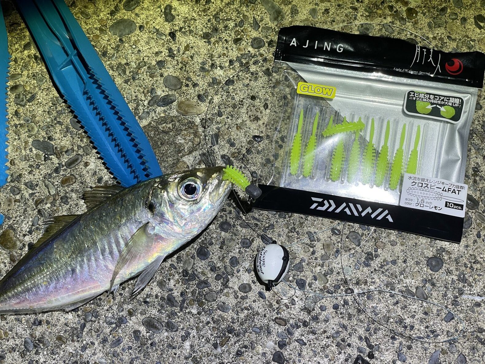 と、ライトゲーム用のワームの中でも一際 小さいサイズ感になっており、アジのような小さい捕食でも喰わせられるような感覚がありました。