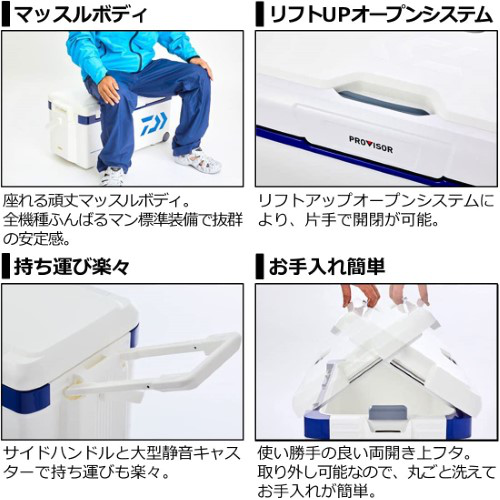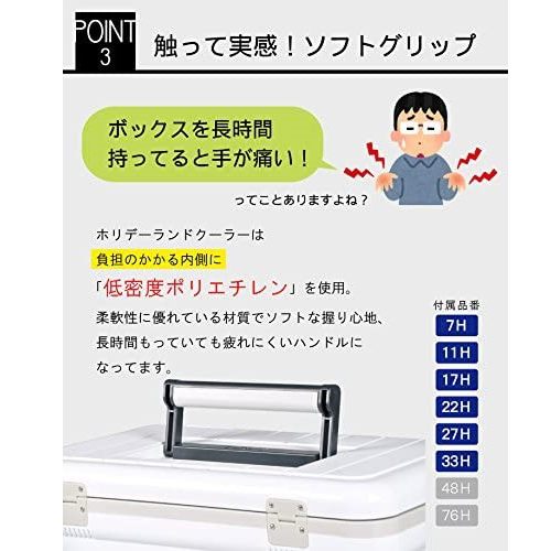 とにかく価格が安いクーラーボックスです。しかし、安心の日本製。眩しいくらいの明るいホワイトを基調に燃えるようなレッドがアクセント。自重も軽いので釣り人にはもちろん、アウトドアレジャーでも大活躍してくれるでしょう。豊富なサイズバリエーションでヒラメ釣りはモチロン、各用途に合ったサイズが見つかります。お小遣いアングラーにおすすめ。