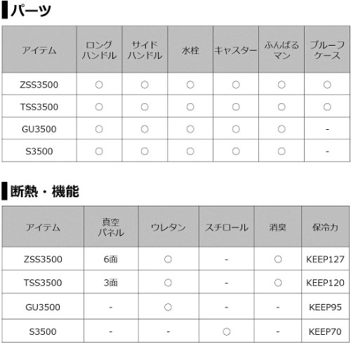 | 断熱材 | リニアポリエチレン/ポリウレタン/ポリプロピレン |