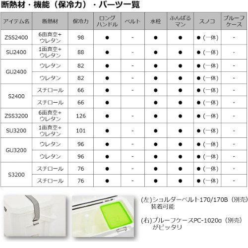 各種、色々なサイズ、保冷力があります。ヒラメ釣りであれば(シーズン的に)一番下の保冷力でも十分だと思いますが、遠征釣りをされる方は2日(ICE値48以上)のモデルも良いでしょう。ヒラメ釣りには35L前後の容量・サイズが一番使い勝手が良いのでおすすめです。