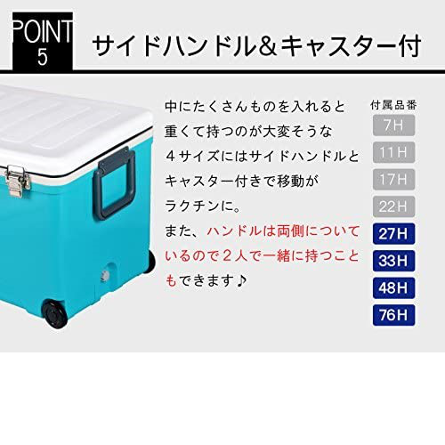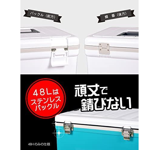 価格が安いのが魅力的なクーラーボックスです。知る人ぞ知るメイドインジャパン『株式会社伸和』で、容量の割には価格が非常に安いです。カゴを入れたり、仕切りを作るなど様々なカスタムが可能なのも面白いところ。色々なサイズがありますが、船ヒラメ釣りには48Lがおすすめです。