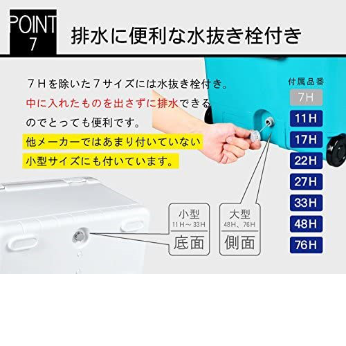 大容量にしては、比較的価格の安いゴチュールのクーラーボックスです。密閉もしっかりしていて、水抜きやドリンクホルダー、栓抜きなど釣りに便利な機能も搭載されています。重量はそれなりにありますが(50Lで11.8㎏)、保冷などのことを考えると妥当でしょう。ヒラメ釣りには丁度良いサイズ感です。