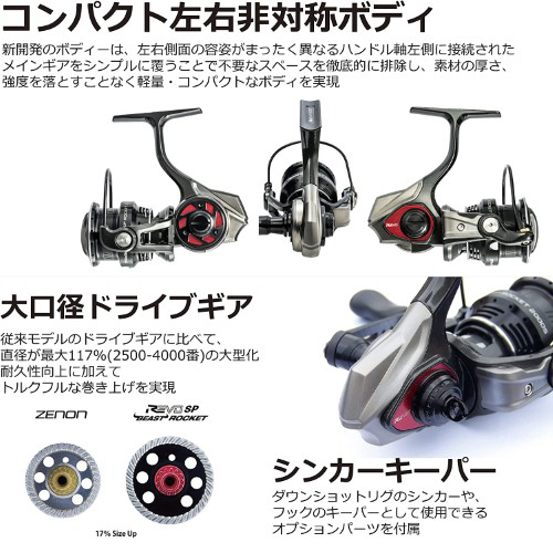 ダイワの一つテンヤ真鯛専用スピニングリールです。先述のカルディアをベースに、ひとつテンヤゲームを最大限に楽しめるような専用設計に仕上がっています。高い剛性を誇るザイオンボディに、塩ガミ対策にはマグシールドと、ダイワの防水・耐久テクノロジーを惜しみなく搭載した機能充実の一つテンヤ真鯛特化型スピニングリールです。