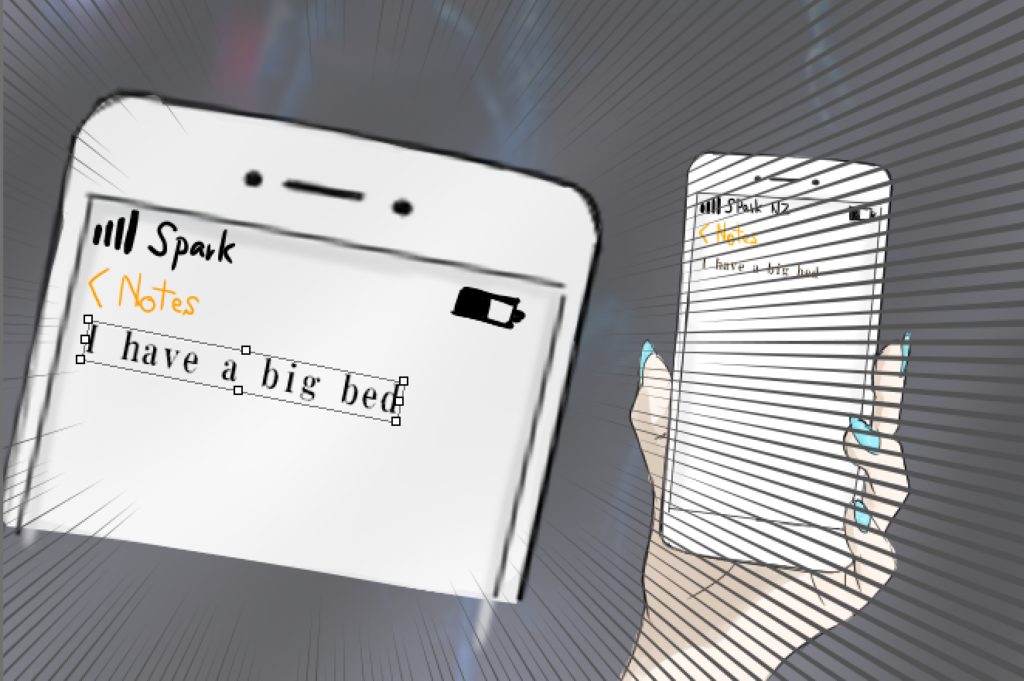 スマホのスクリーンに浮かぶ文字を傾けます。