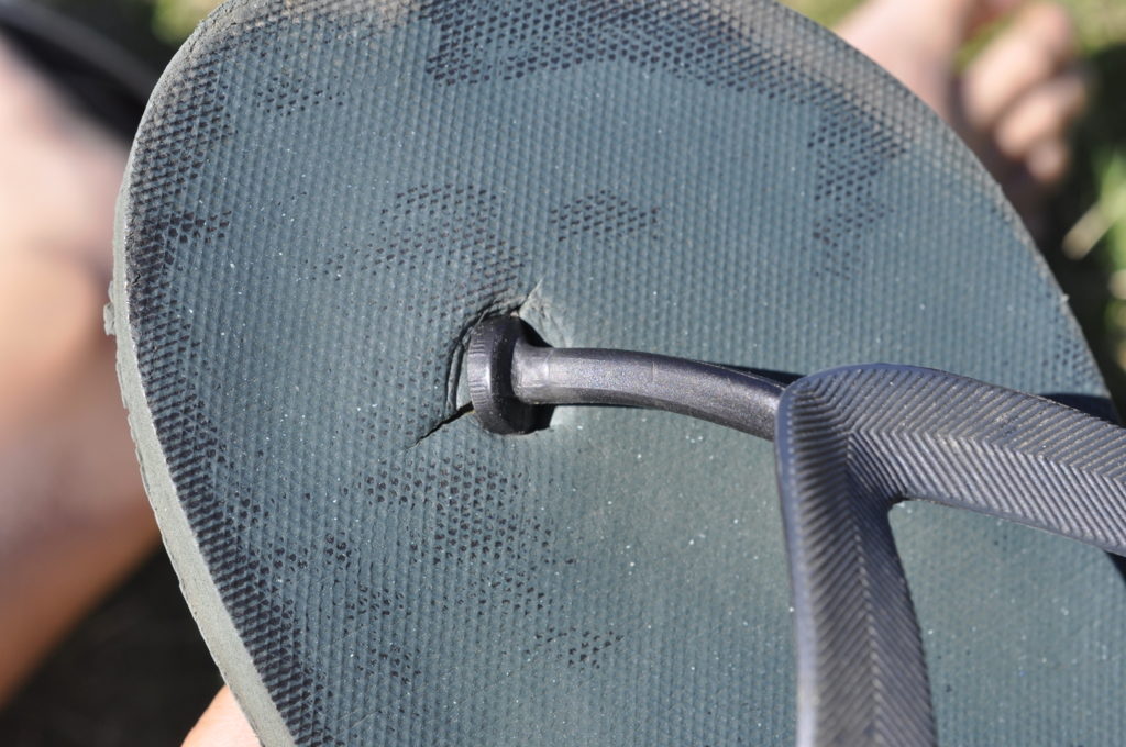 まず壊れたビーサンというのは先述したように、上記の写真のように緒が切れたビーチサンダルを指します。